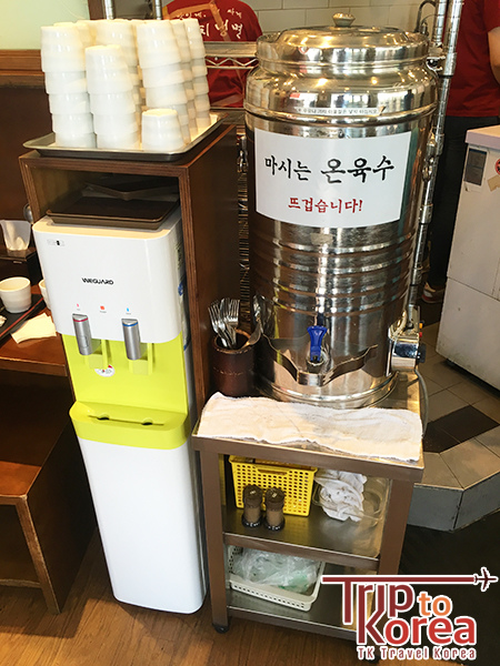 水跟白湯(鐵桶裝的)是自助的